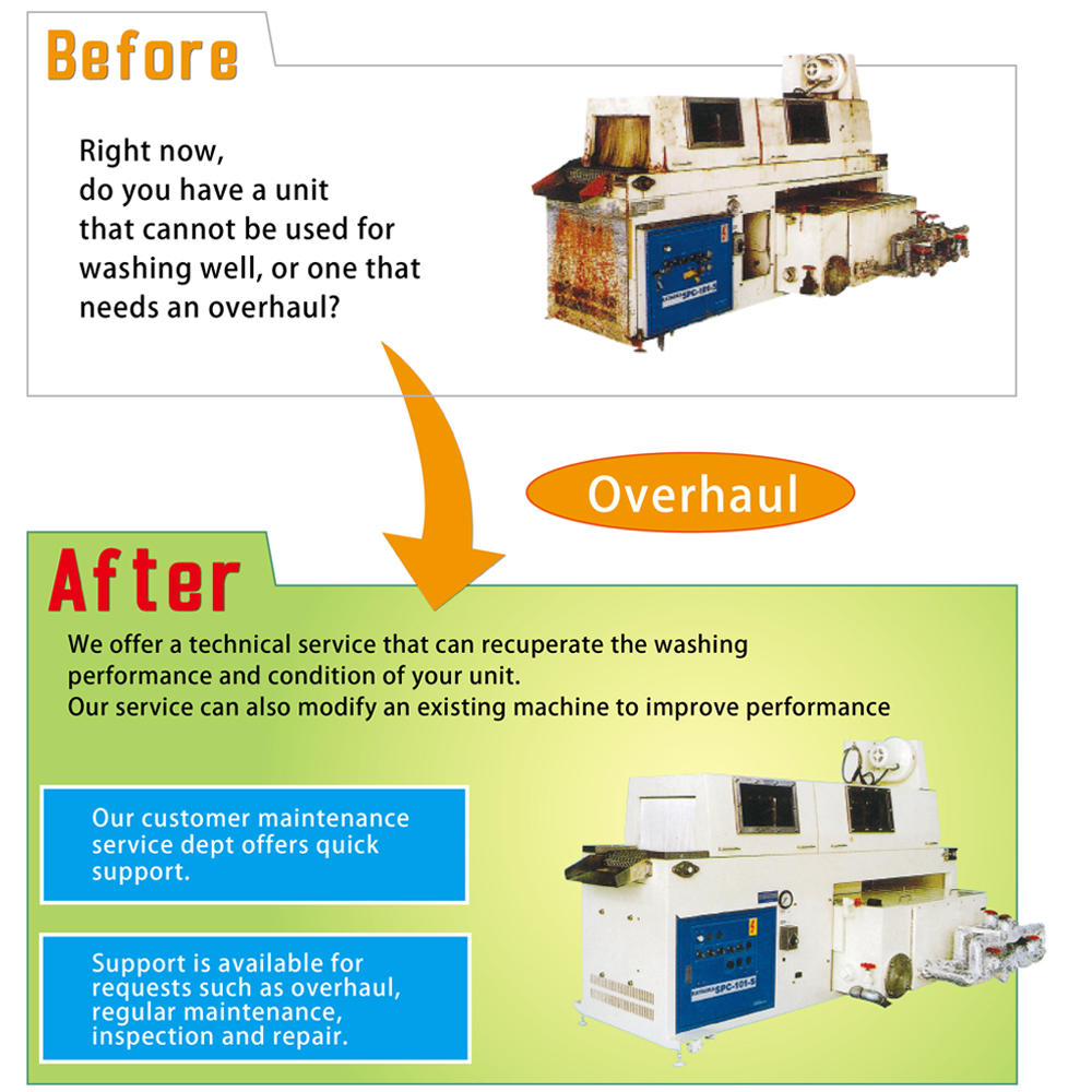 ■Refresh and reuse machines sleeping in the warehouse ■Remodeling by changing workpieces and lines, increasing capacity ■Regular maintenance for machine longevity and trouble prevention